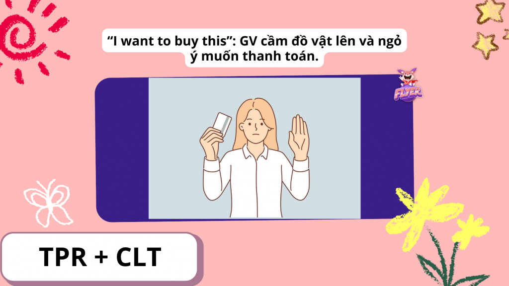 Ứng dụng TPR: thực hiện các hành động, câu hỏi, âm thanh để dạy các từ/ cụm từ liên quan đến mua sắm.