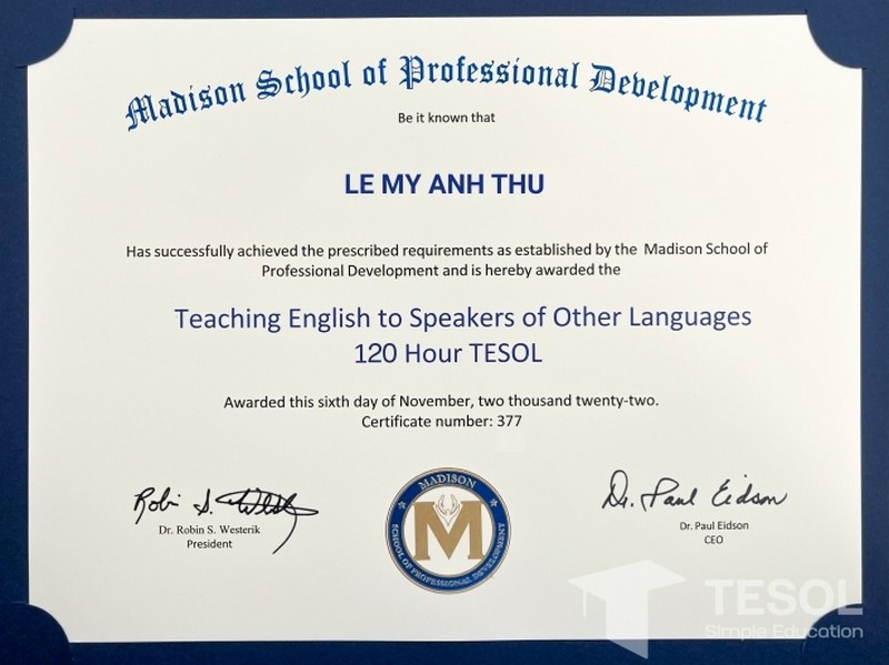 Vì vậy, nếu bạn đang tìm kiếm một khóa học cấp chứng chỉ TESOL quốc tế, bạn có thể cân nhắc TESOL Simple Education – Trung tâm giảng dạy chứng chỉ TESOL uy tín, đã đào tạo và đồng hành hơn 4500 giáo viên tiếng Anh nhé!