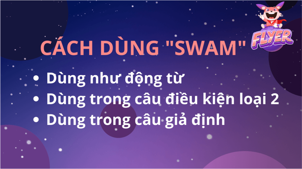 Trước khi tìm hiểu sâu hơn về cách dùng cũng như các cấu trúc liên quan đến quá khứ của “swim”, hãy cùng FLYER ôn lại một số kiến thức của “swim” nhé! Trong tiếng Anh, từ “swim” được sử dụng phổ biến dưới dạng động từ và danh từ.