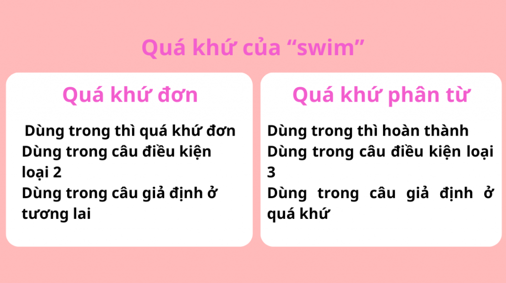 2. Chi tiết cách dùng quá khứ của “Swim”