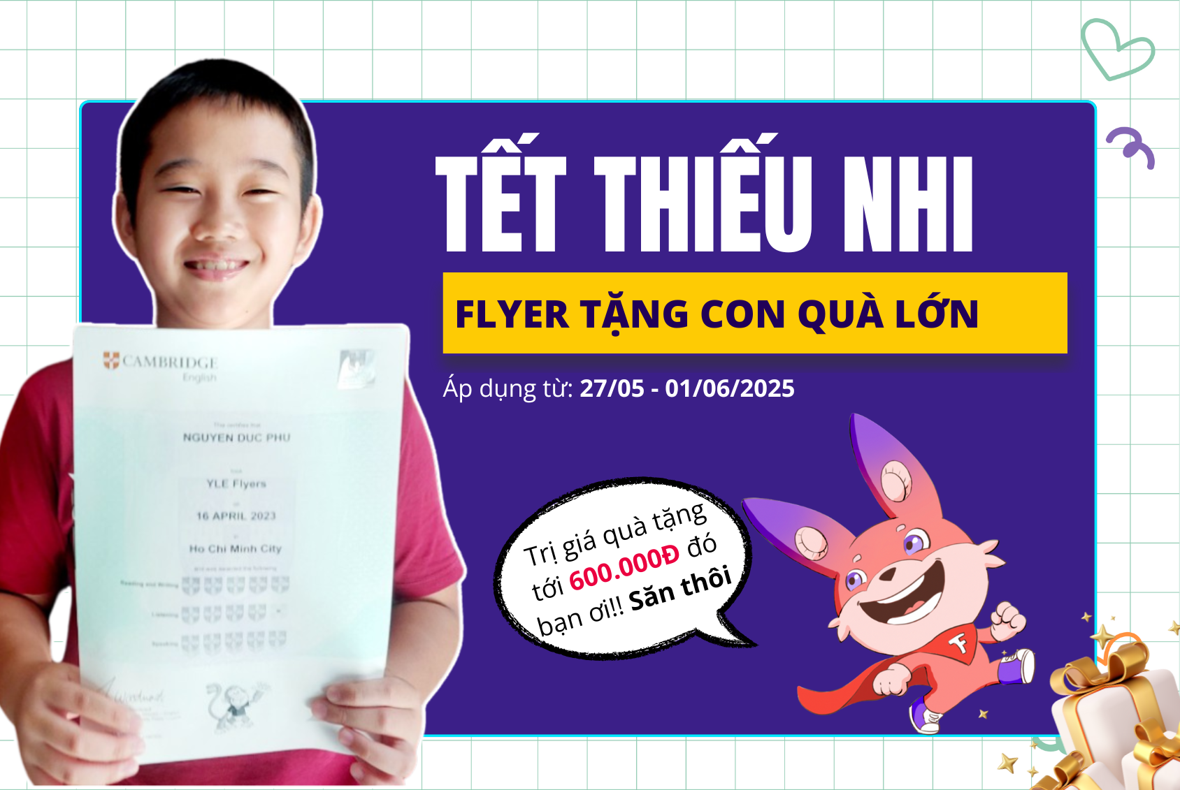 FLYER là phòng luyện thi ảo đầu tiên tại Việt Nam với nhiều nội dung hấp dẫn, thiết kế sinh động, bảng điểm đánh giá,… để học sinh tiểu học ôn tập lấy bằng Cambridge và TOEFL Primary – một “tấm vé thông hành” giúp học sinh tiểu học bước vào cánh cửa trường cấp 2 chuyên, trường quốc tế.