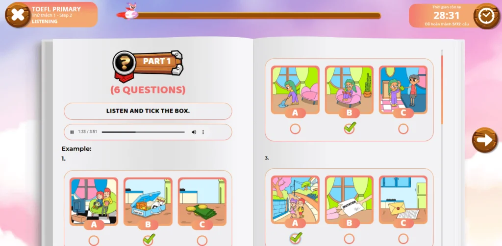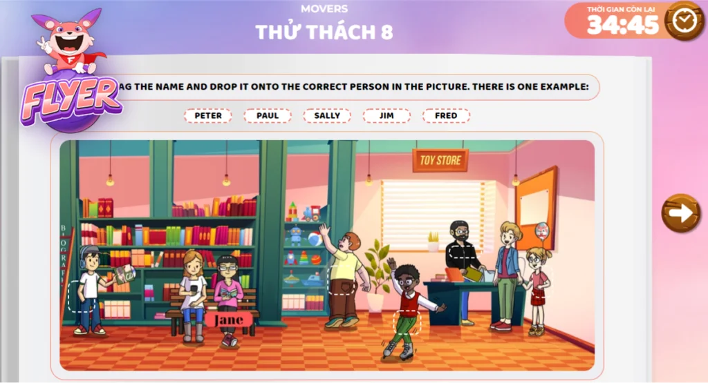 - Các bài thi đều được thiết kế sao cho việc học tiếng Anh trở nên thú vị hơn, mang lại cho trẻ động lực và thái độ tích cực trong việc học tiếng Anh