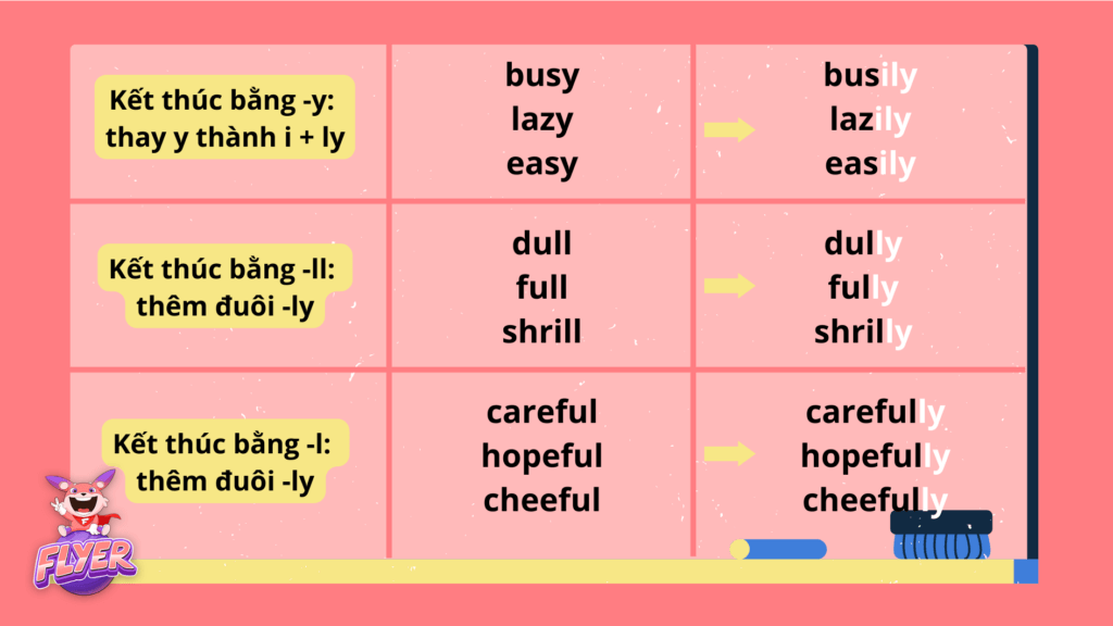 Quy tắc thêm đuôi “-ly” vào trạng từ chỉ cách thức