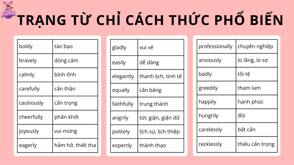 Trong bảng dưới đây, FLYER lược bỏ chữ “một cách” đi để bớt rườm rà nhé!