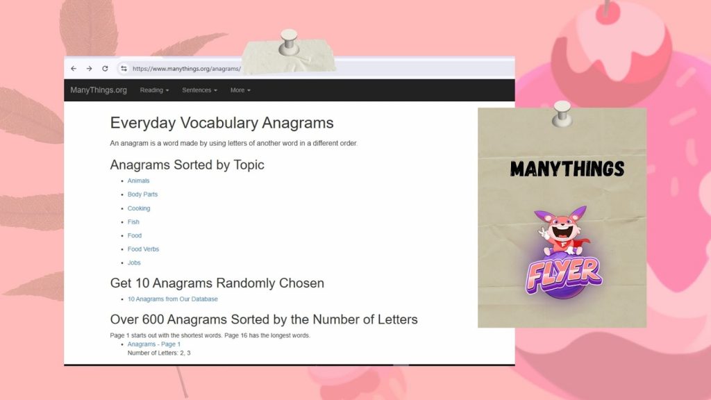 Manythings cũng là một trang web học từ vựng tiếng Anh miễn phí được rất nhiều người ưa chuộng nhờ phương pháp học vui nhộn và giao diện cực kỳ thân thiện. Đúng như tên gọi “Many Things”, trang web này thực sự là một “kho tàng đủ thứ” dành cho người học tiếng Anh, đặc biệt là trong việc cải thiện vốn từ vựng cho kỹ năng Writing.