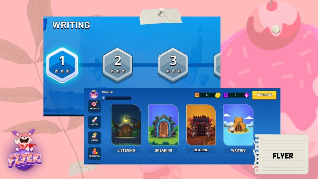 - FLYER đặc biệt bởi tính năng game hóa trải nghiệm học tập, thiết kế các bài ôn luyện dưới dạng trò chơi mà vẫn giữ format chuẩn của bài thi, giúp người học tiếp thu kiến thức một cách tự nhiên mà không nhàm chán.