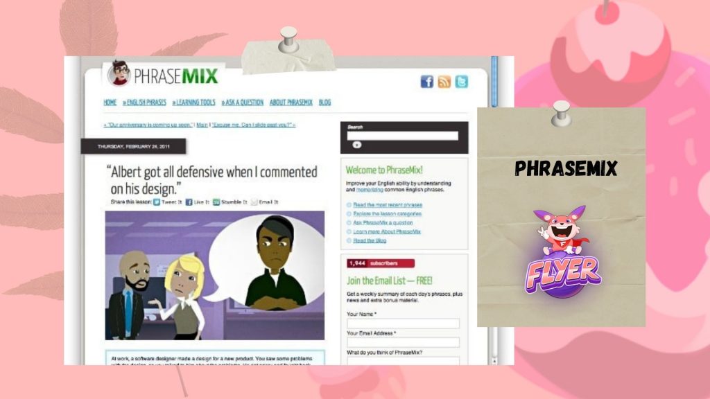 Link web cải thiện từ vựng Phrasemix: https://www.phrasemix.com/