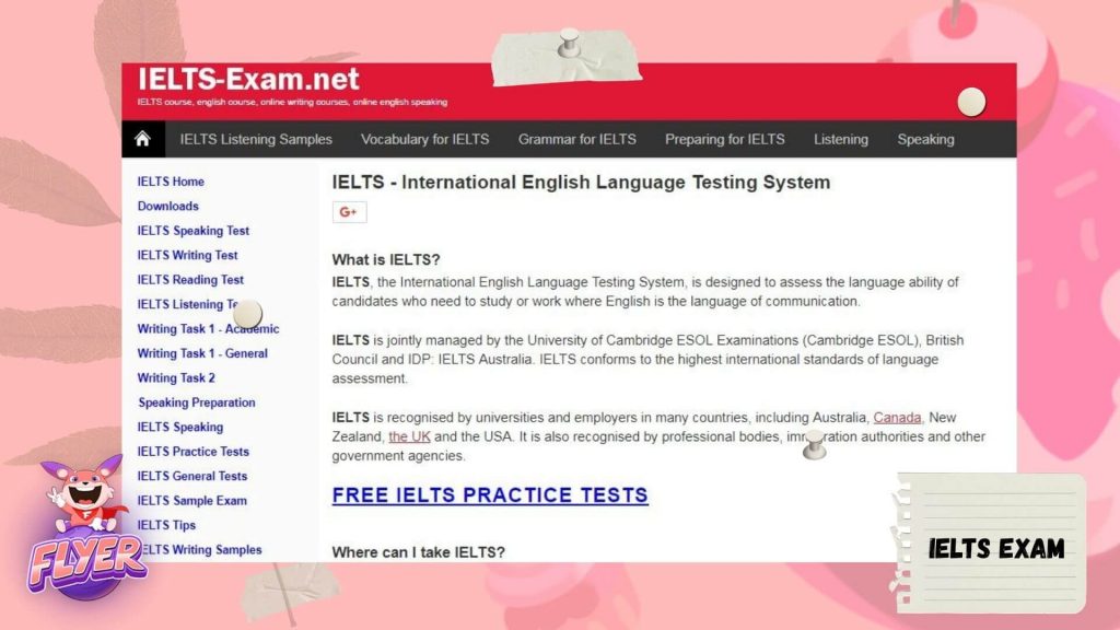 Link trang web luyện Writing IELTS Exam: https://www.ielts-exam.net/
