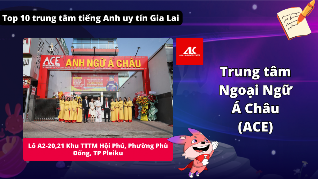 | Trung tâm Ngoại Ngữ Á Châu (ACE) | Lô A2-20,21 Khu TTTM Hội Phú, Phường Phù Đổng, TP Pleiku, Gia Lai | Từ 500.000 – 1.000.000 VNĐ/ tháng |