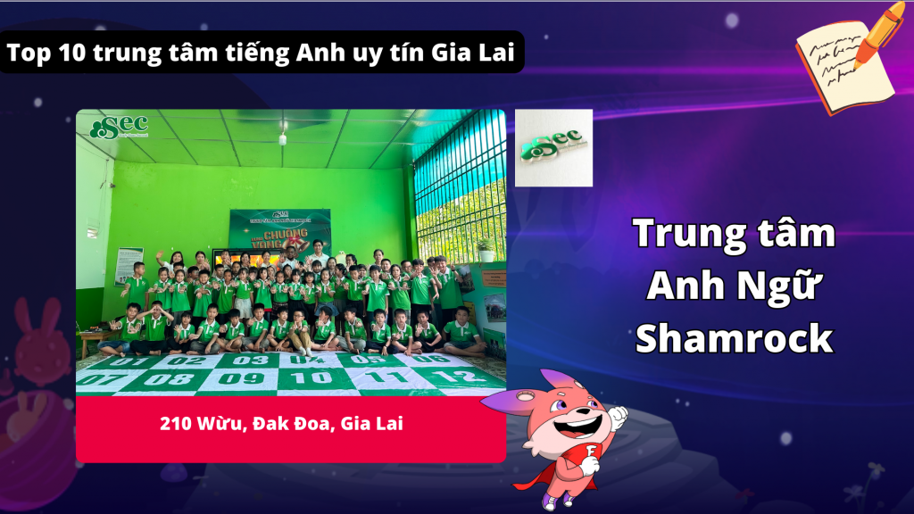 | Trung tâm Anh Ngữ Shamrock | 210 Wừu, Đak Đoa, Gia Lai | Từ 1.500.000 VNĐ/ tháng |