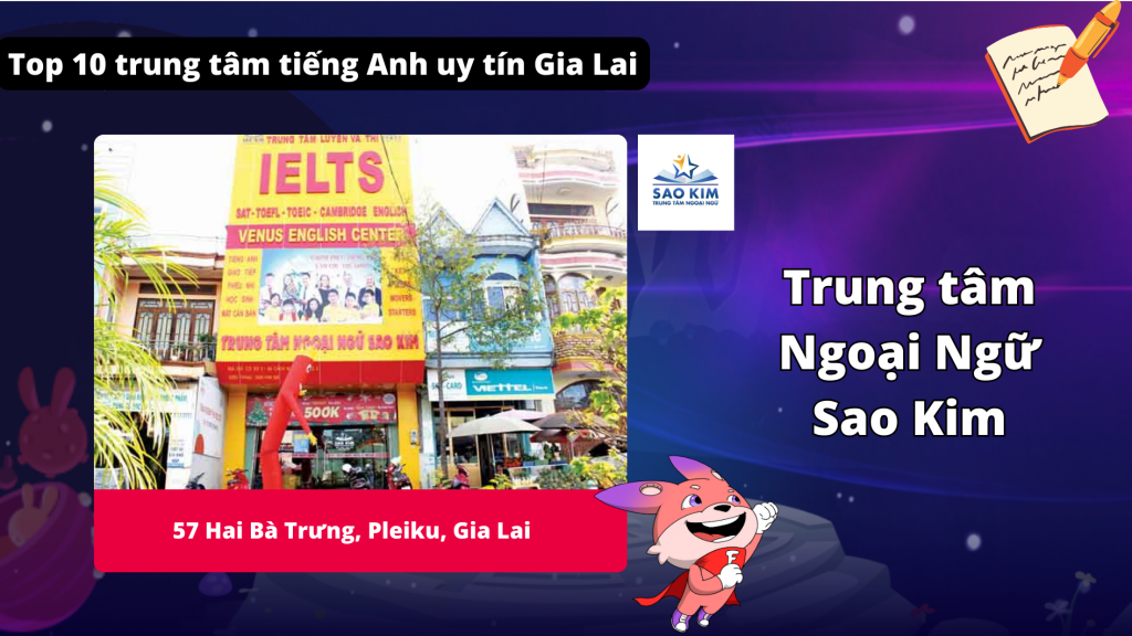 | Trung tâm Ngoại Ngữ Sao Kim | 57 Hai Bà Trưng, Pleiku, Gia Lai | 1.000.000 – 2.000.000 VNĐ/ khóa |