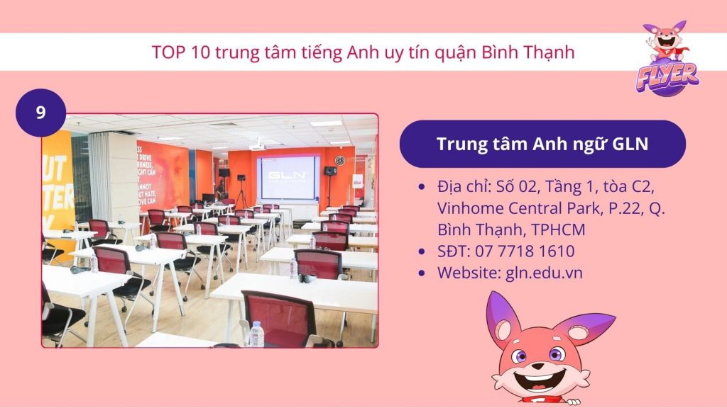 | 9 | Trung tâm Anh ngữ GLN | Các khóa học tiếng Anh thông thường | 153.000 – 202.000/ buổi |