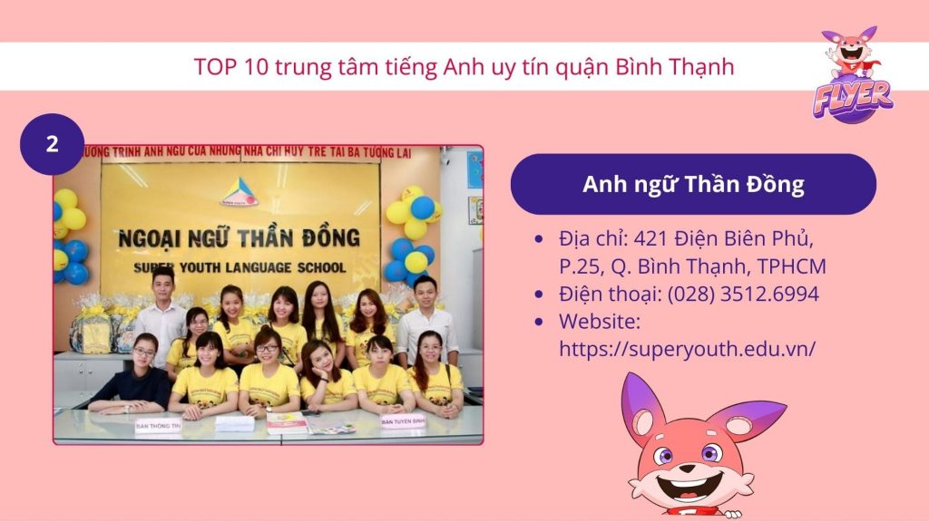 Thông qua bài viết, FLYER đã gợi ý đến ba mẹ TOP 10 trung tâm tiếng Anh uy tín nhất quận Bình Thạnh. Ba mẹ hãy cân nhắc kỹ lưỡng các tiêu chí như khả năng, thói quen học tập của trẻ, cũng như điều kiện tài chính của gia đình để đưa ra lựa chọn phù hợp nhất. Cuối cùng, FLYER mong rằng dù có gửi gắm trẻ đến trung tâm ngoại ngữ, ba mẹ cũng đừng quên đồng hành cùng con trên hành trình chinh phục tiếng Anh nhé!