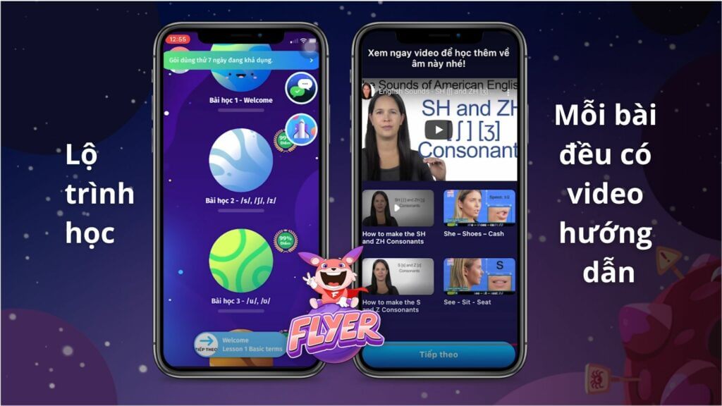 Trong mỗi bài học của ELSA đều cung cấp một video hướng dẫn phát âm cụ thể với những thước phim về cách đặt răng – môi – lưỡi, giúp bạn phát âm thật chuẩn xác.