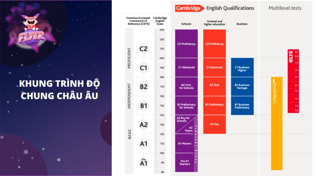 Ghi chú: IELTS cũng do Cambridge English tổ chức nhưng thuộc 1 hệ thống chứng chỉ khác