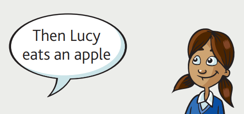 Bé cũng có thể nghe hiểu những câu chuyện kể với các câu có cấu trúc căn bản ở thì hiện tại đơn hoặc hiện tại tiếp diễn.