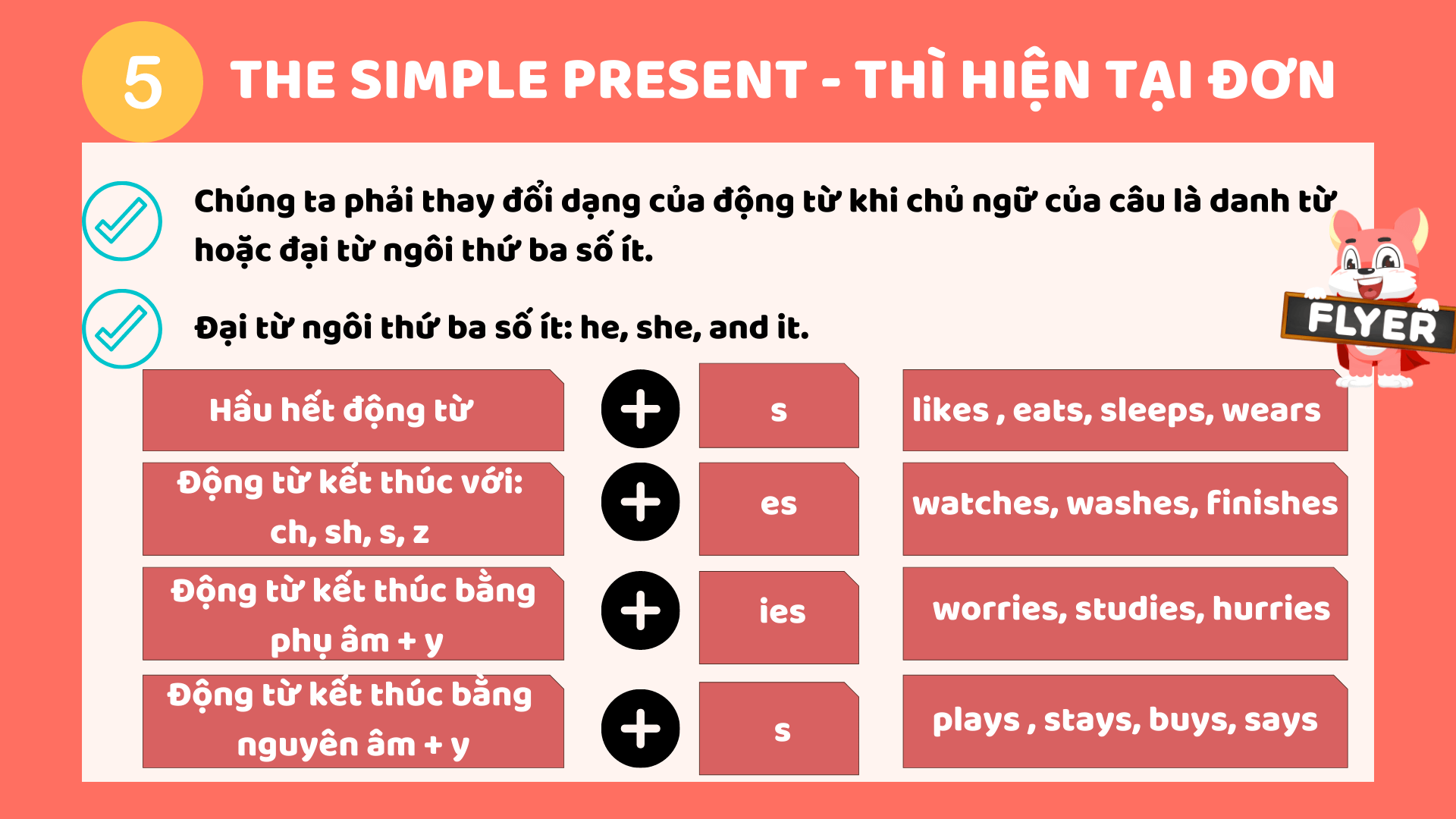 | Còn lại → Thêm -s | enjoy → enjoys sing → sings eat → eats |