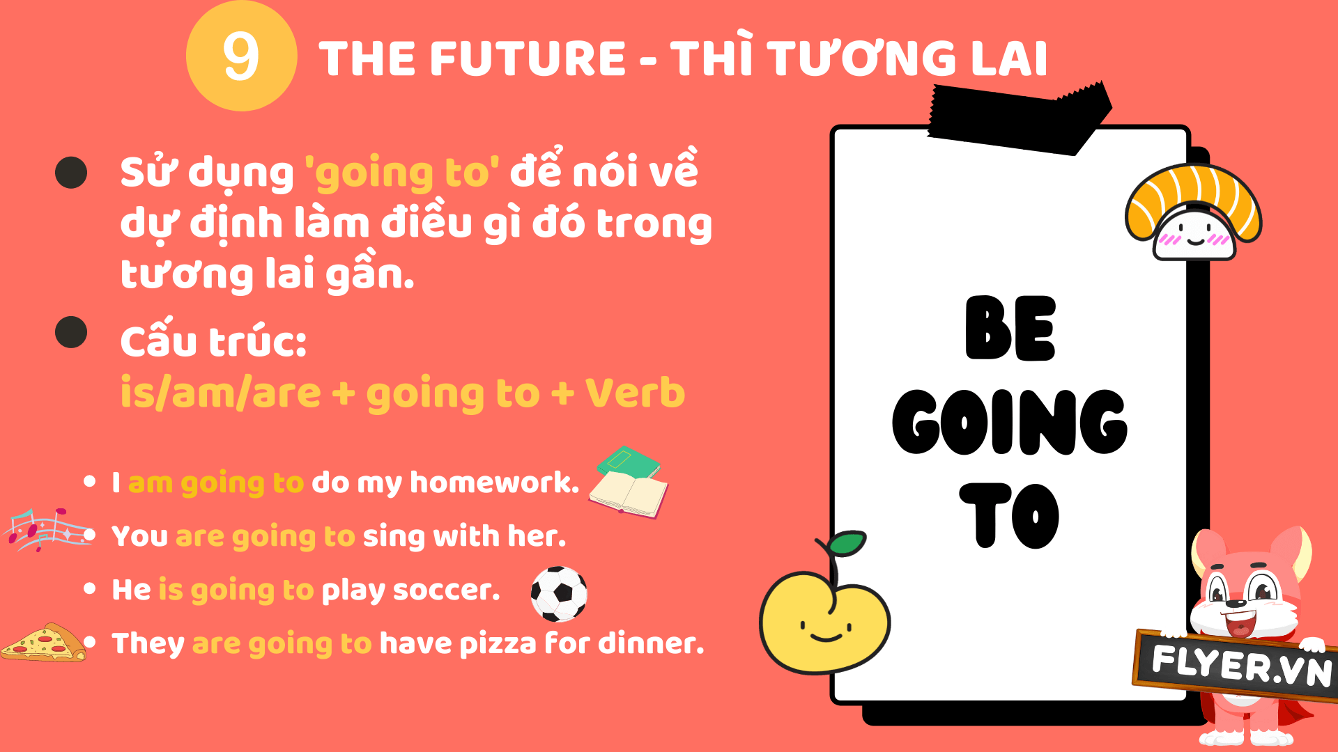 Cấu trúc “be going to” diễn tả dự định làm việc gì đó trong tương lai gần: