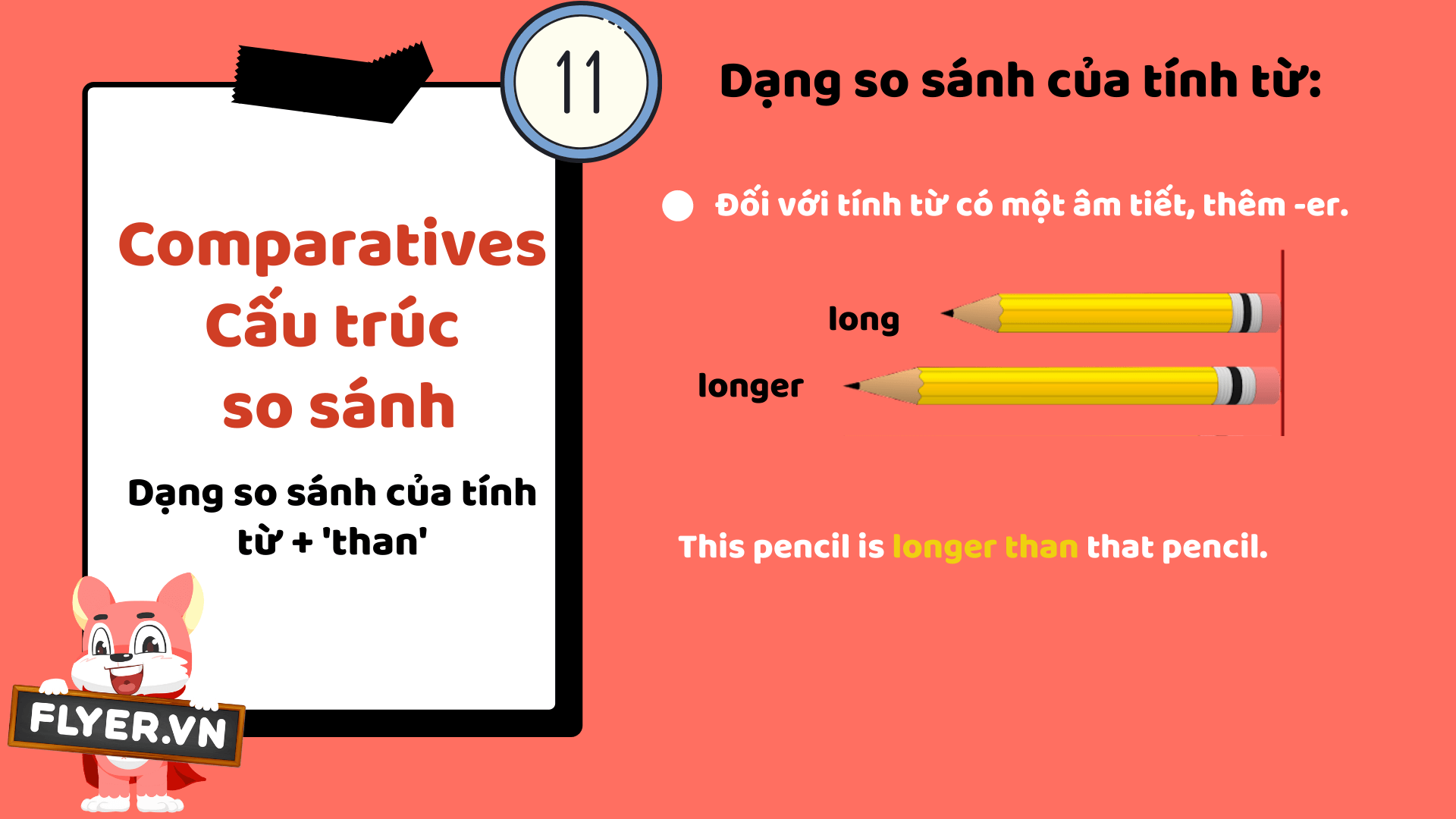 Khi sử dụng cấu trúc so sánh hơn, con cần phân biệt giữa tính từ/trạng từ ngắn và tính từ/trạng từ dài để áp dụng cấu trúc phù hợp.