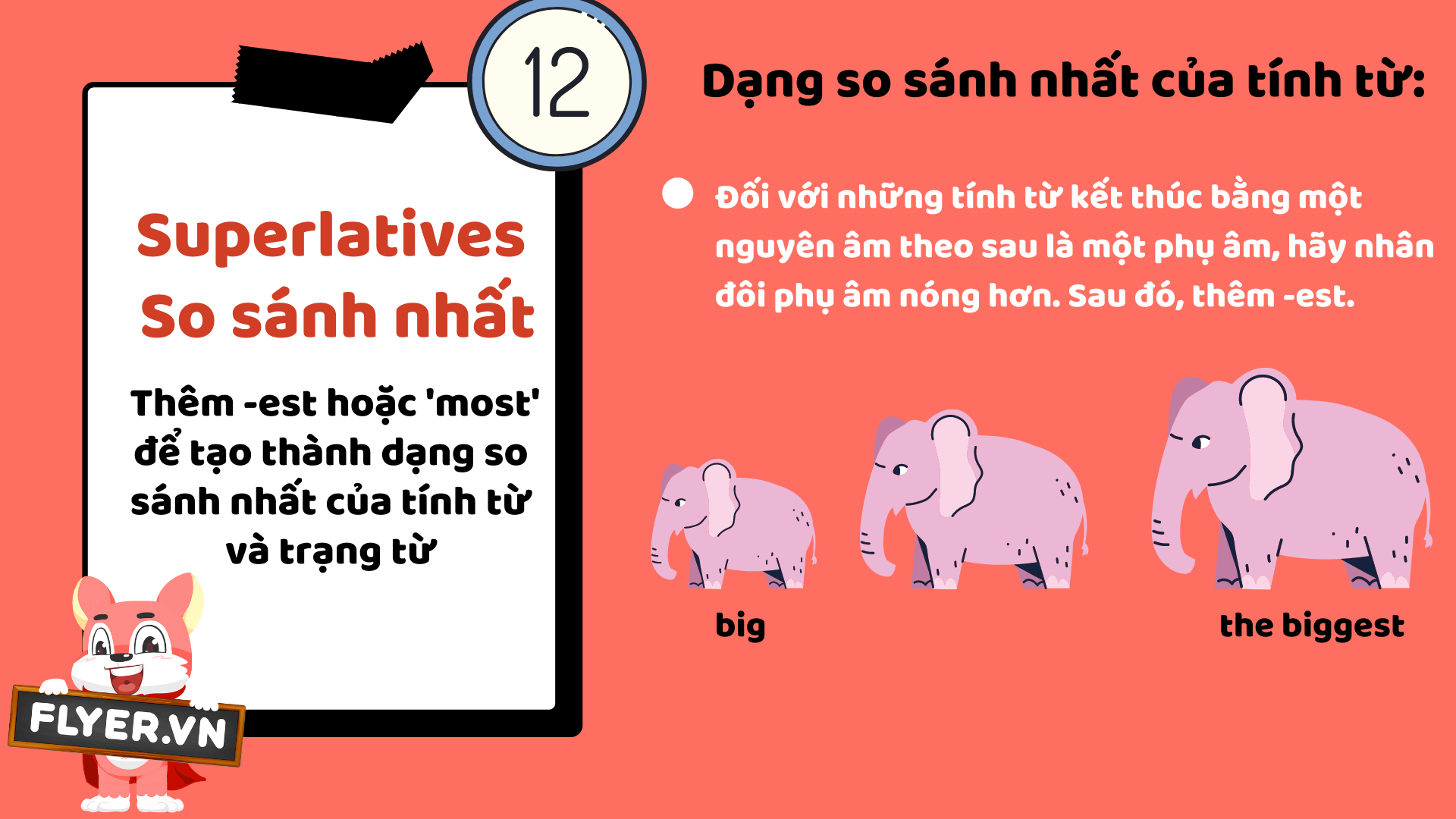 Khi so sánh nhất, tính từ/ trạng từ ngắn sẽ được thêm đuôi -est. Quy tắc thêm đuôi -est cũng giống như thêm đuôi -er khi so sánh hơn.