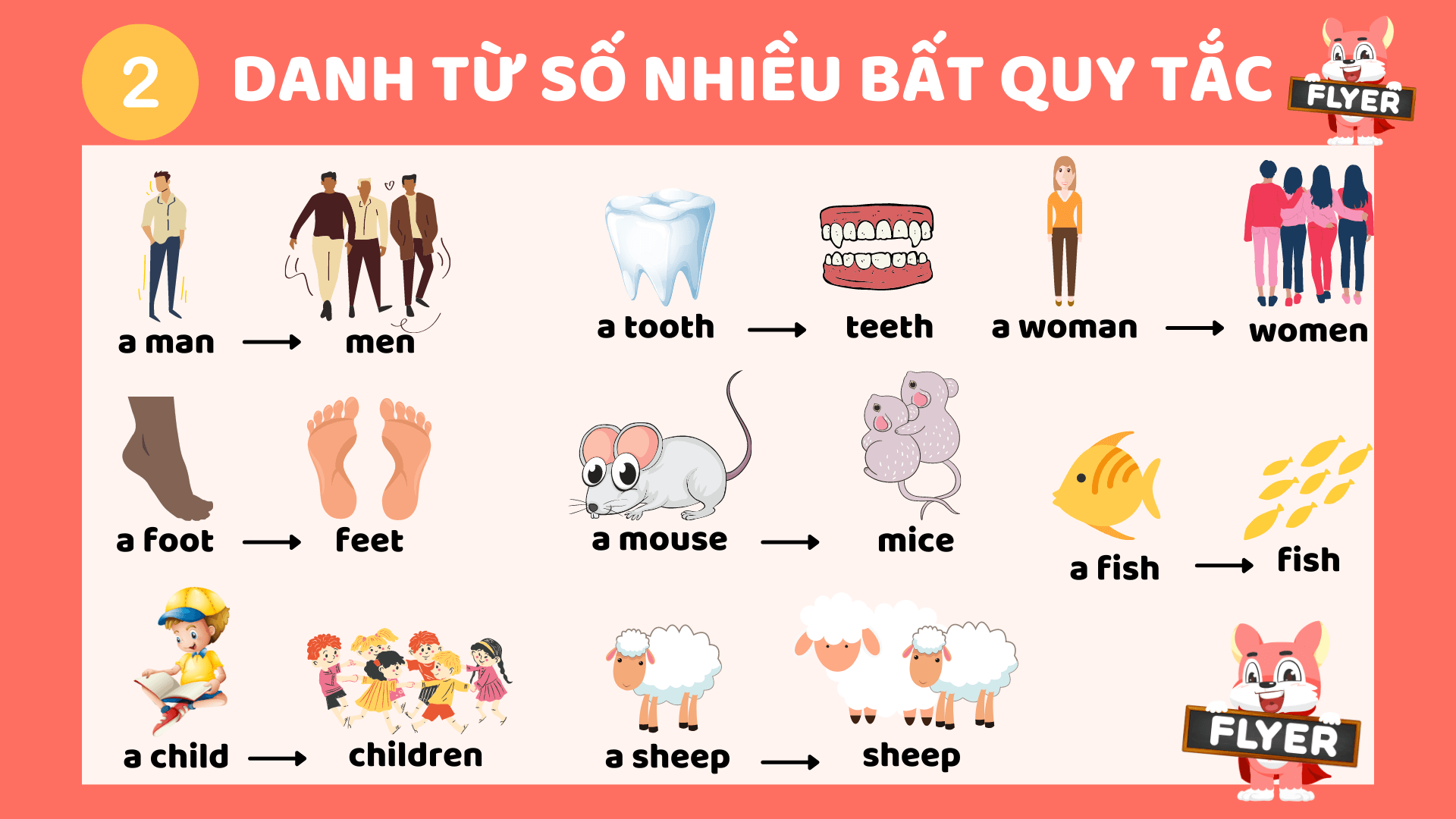 Quy tắc trên chỉ áp dụng cho các danh từ số ít để tạo thành danh từ số nhiều. Con cần nhớ một số trường hợp đặc biệt sau: