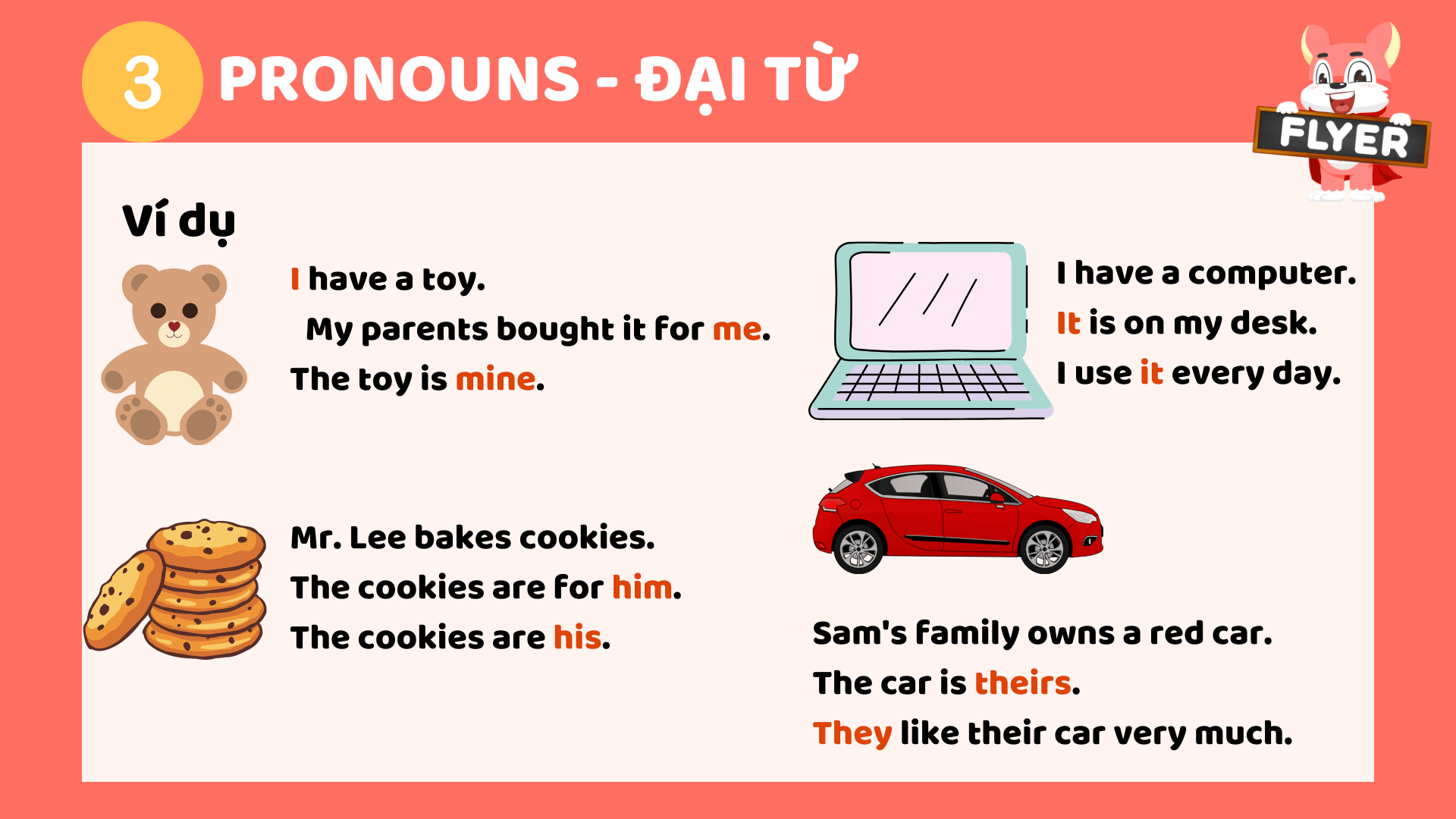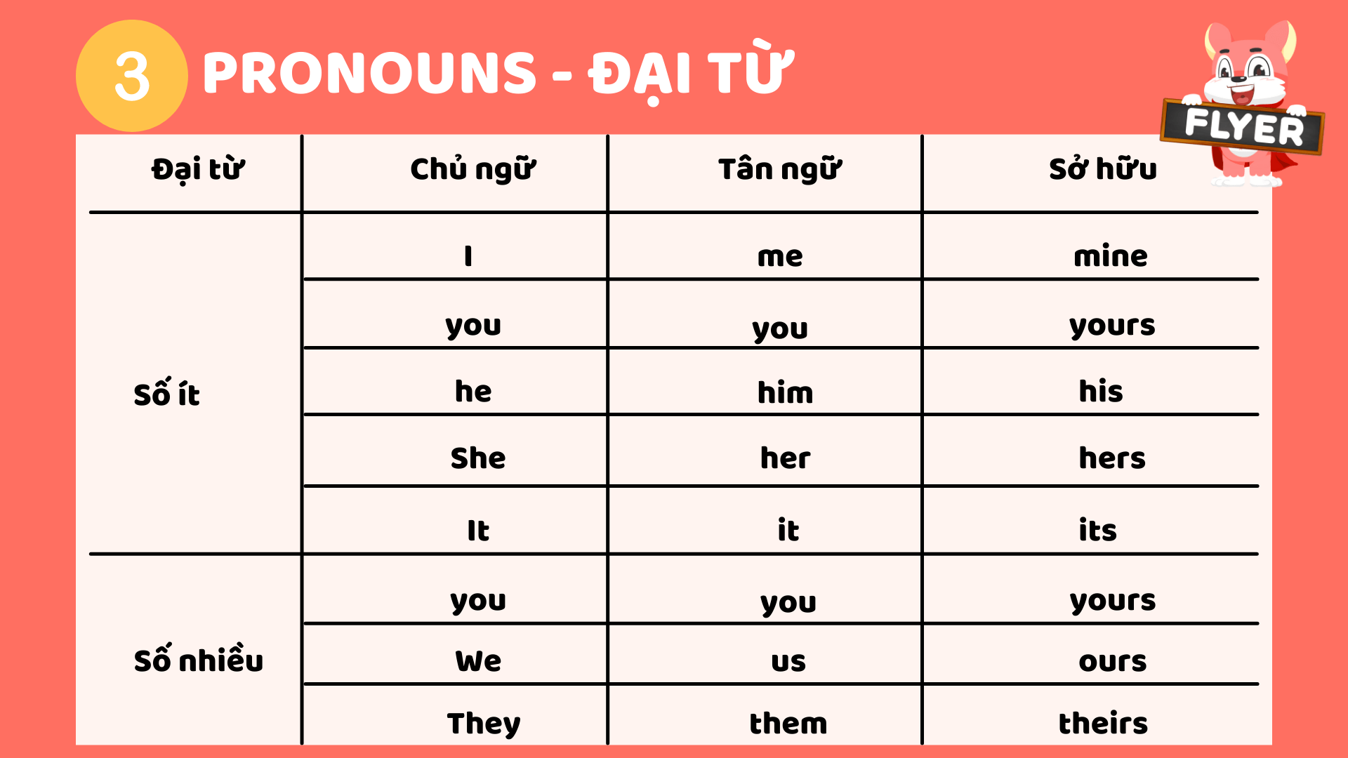 Đại từ (Pronoun) là từ được sử dụng thay cho danh từ hoặc cụm danh từ.