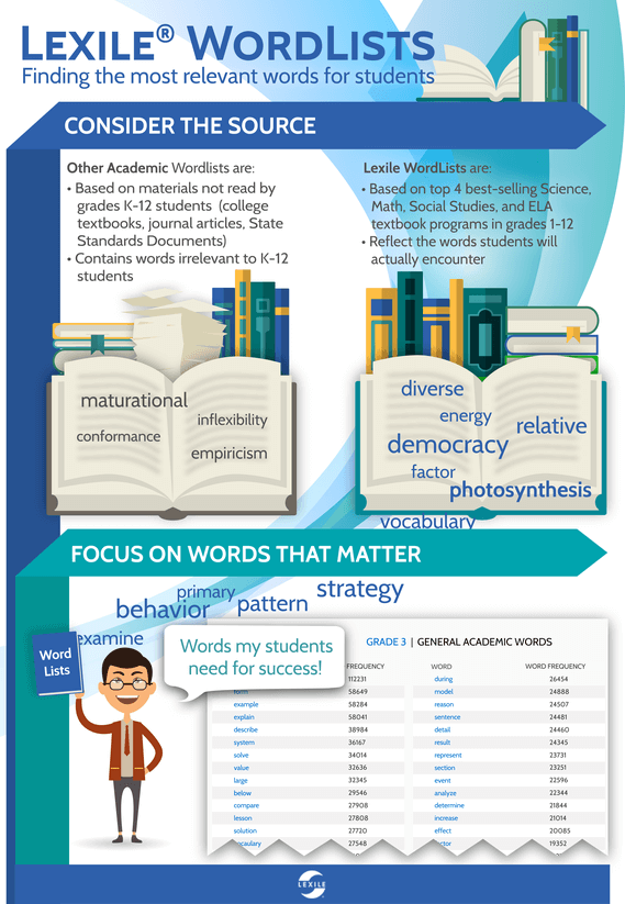 Học từ vựng phù hợp, đúng thời điểm là chìa khóa để xây dựng nền tảng từ vựng vững chắc. Lexile®WordLists được tổng hợp dựa trên các chương trình sách giáo khoa các môn Khoa học, Toán, Xã hội từ lớp 1 – 12. Công cụ này sẽ giải quyết vấn đề về lỗ hổng từ vựng cho học sinh. Đồng thời, con cũng sẽ chuẩn bị được nền tảng từ vựng vững chắc cho quá trình học tập của mình.