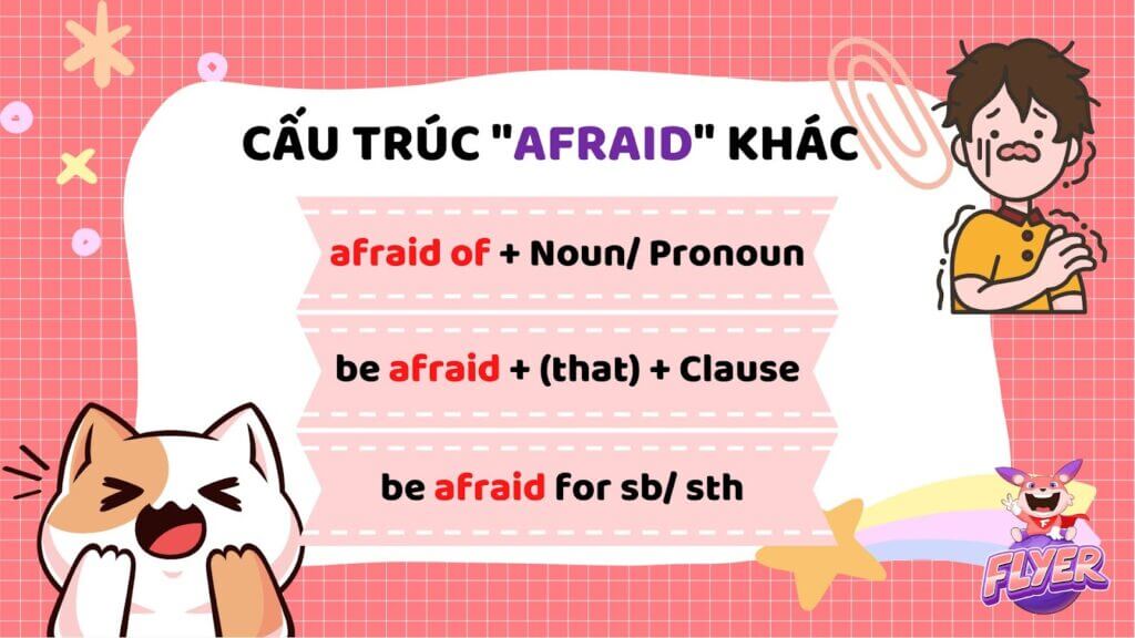 Như vậy bạn đã biết “afraid” đi với giới từ gì. Sau đây hãy cùng FLYER tìm hiểu về cấu trúc và cách dùng chi tiết của “afraid” nhé.
