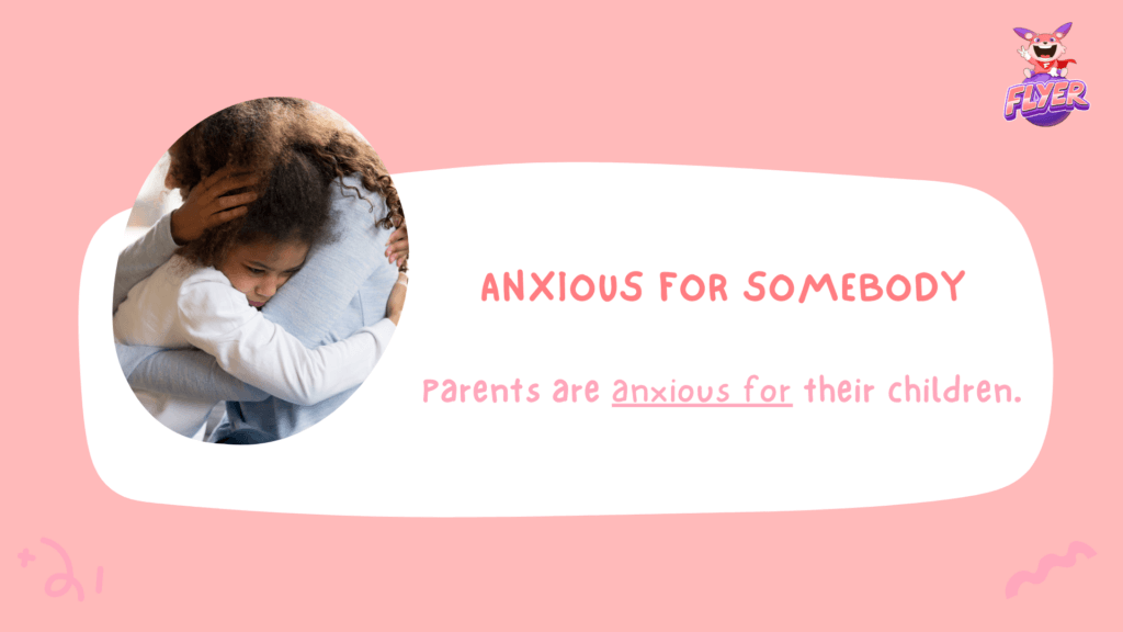 “Anxious for” đi với “somebody” (một người nào đó) có nghĩa tiếng Việt là “lo lắng cho ai đó”.