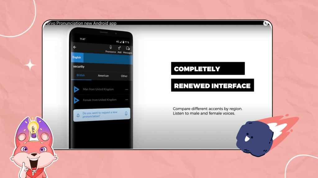 Không chỉ vậy, app luyện nói tiếng Anh này còn có các câu hỏi để bạn làm bài tập sau các video đã xem. Bạn sẽ luyện phát âm tiếng Anh bằng cách nói câu trả lời của mình để điền vào những chỗ trống trong câu. Sau đó, thiết bị sẽ cho bạn biết cách phát âm của bạn có chính xác hay không.