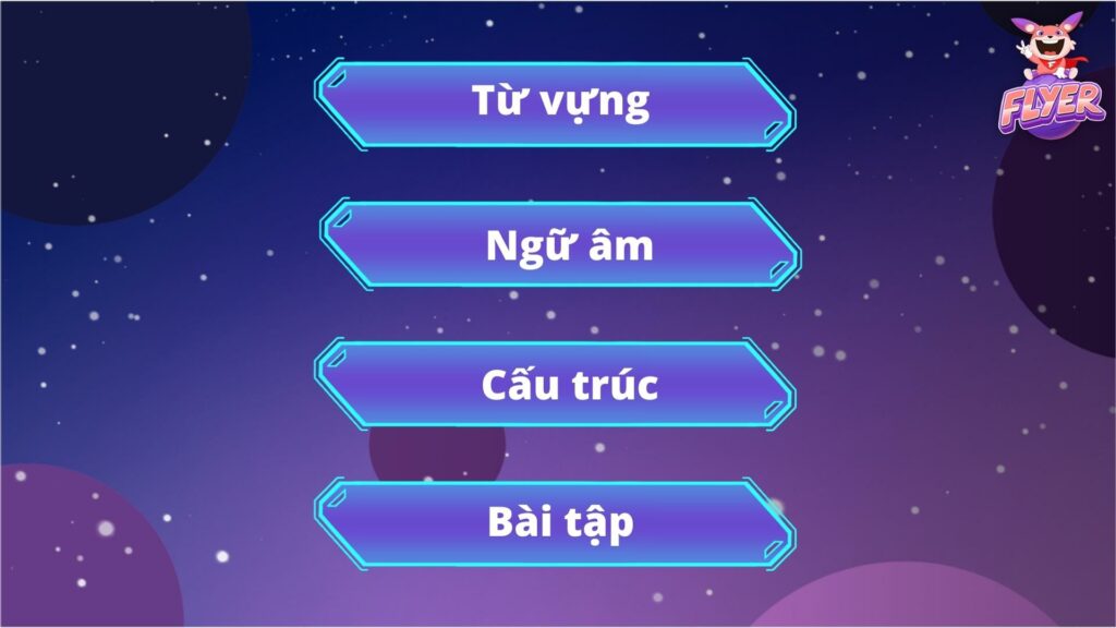 - Cấu trúc (Structure): Với phần này, các bé sẽ được học những cấu trúc đơn giản như: cách đặt câu hỏi về đồ vật, đặt câu hỏi về nơi chốn hay học những câu mệnh lệnh (imperative clauses) quen thuộc.