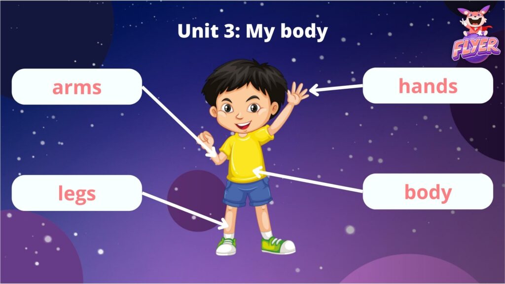 Các bộ phận trên cơ thể như tay, chân, đầu,… gọi tiếng Anh là gì nhỉ? Bé đã biết bao nhiêu từ vựng chỉ các bộ phận rồi? Với unit 3: My body, các bé lớp 2 sẽ học từ vựng về các bộ phận trên cơ thể và các động từ thường dùng với các bộ phận ấy. Bên cạnh đó, bé còn được làm quen với câu mệnh lệnh, cách mô tả đặc điểm cơ thể và tìm hiểu về hai ngữ âm “/m/”, “/ɪ/”.