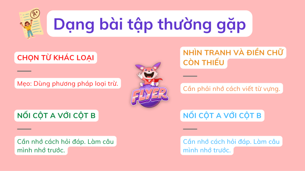 Tiếng Anh lớp 4 được cho là phần khó nhất trong chương trình tiếng Anh tiểu học. Tuy rằng các chủ đề khá gần gũi và xoay quanh cuộc sống hàng ngày, nhưng khối lượng từ vựng nhiều kèm theo những kiến thức ngữ pháp mới hẳn sẽ khiến các con hơi “choáng ngợp”. Hiểu được điều này, FLYER đã tổng hợp các dạng Bài tập và ngữ pháp tiếng Anh lớp 4 học kỳ II quan trọng nhất nhằm hỗ trợ ba mẹ và thầy cô trong quá trình ôn tập kiến thức cho các con trước kỳ thi. Cùng tham khảo ngay bài viết sau đây nhé!