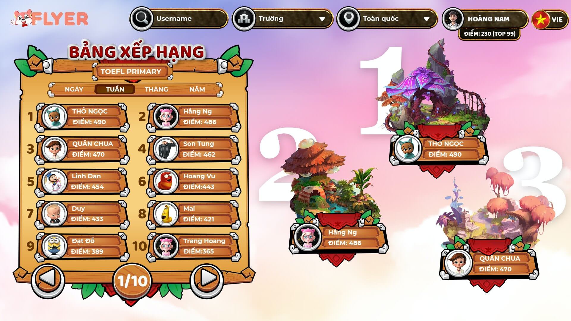 Sau mỗi bài luyện thi các bé sẽ nhận được những đồng xu vàng để có thể mua những đồ vật trang trí cho nhân vật của mình. Với sự kết hợp VỪA HỌC – VỪA CHƠI này, FLYER tin rằng tất cả các bé đều rất hứng thú và hăng say làm bài test.