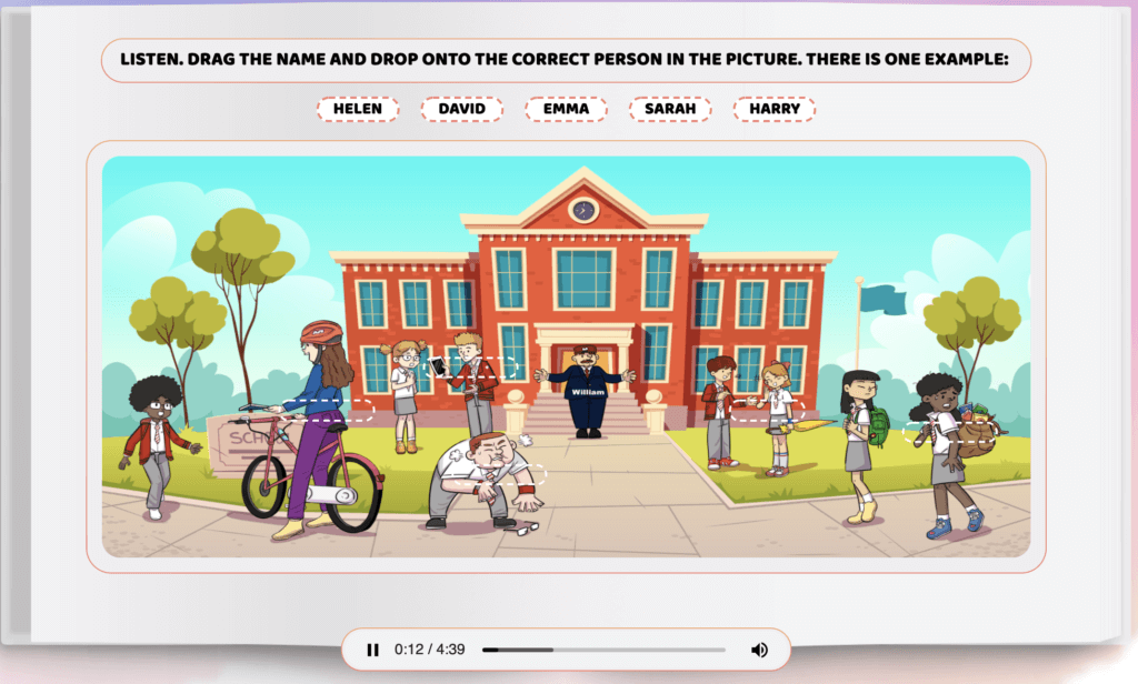 Đặc biệt, trong phần thi Listening, các audio của phòng luyện thi ảo FLYER đã sẵn sàng để nghe. Nhờ vậy, khi ôn thi chứng chỉ Cambridge online với công cụ này, con cảm thấy như được tham gia vào một trò chơi đầy hào hứng, chứ không phải chịu áp lực học tập nặng nề.
