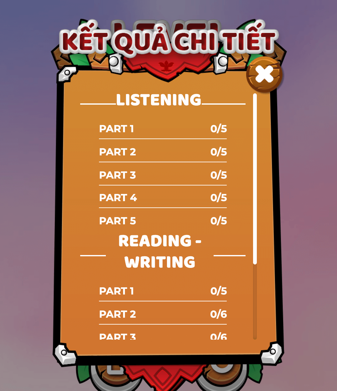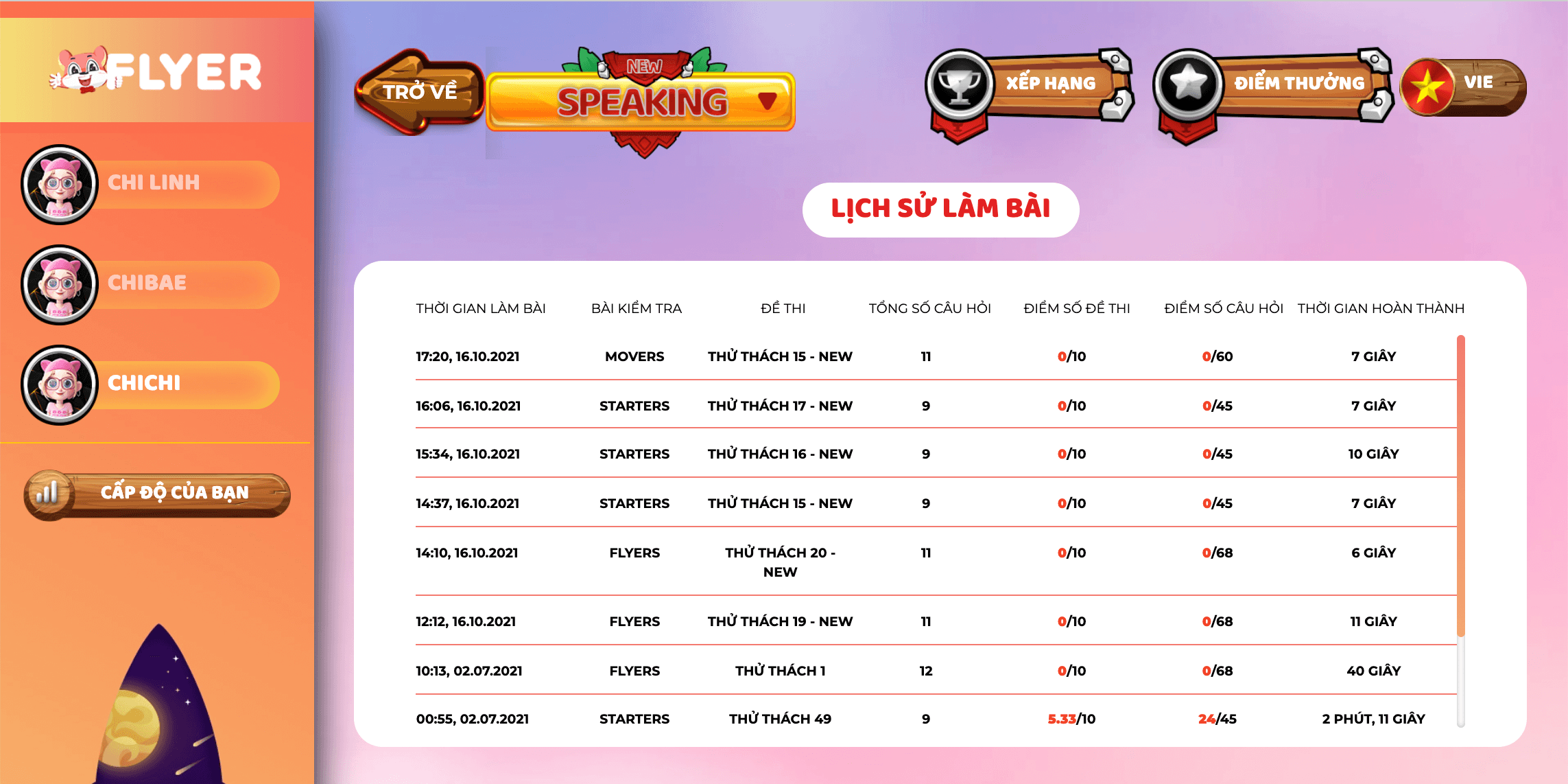 FLYER có hệ thống sơ đồ theo dõi, đánh giá toàn bộ quá trình ôn thi tiếng Anh online của bé. Vì thế, ba mẹ có thể theo dõi sát sao được quá trình học tiếng Anh của trẻ. Từ đó có thể giúp trẻ tập trung ôn luyện những kỹ năng còn yếu nhất, nhằm đạt được hiệu quả cao nhất trong kì thi thật.