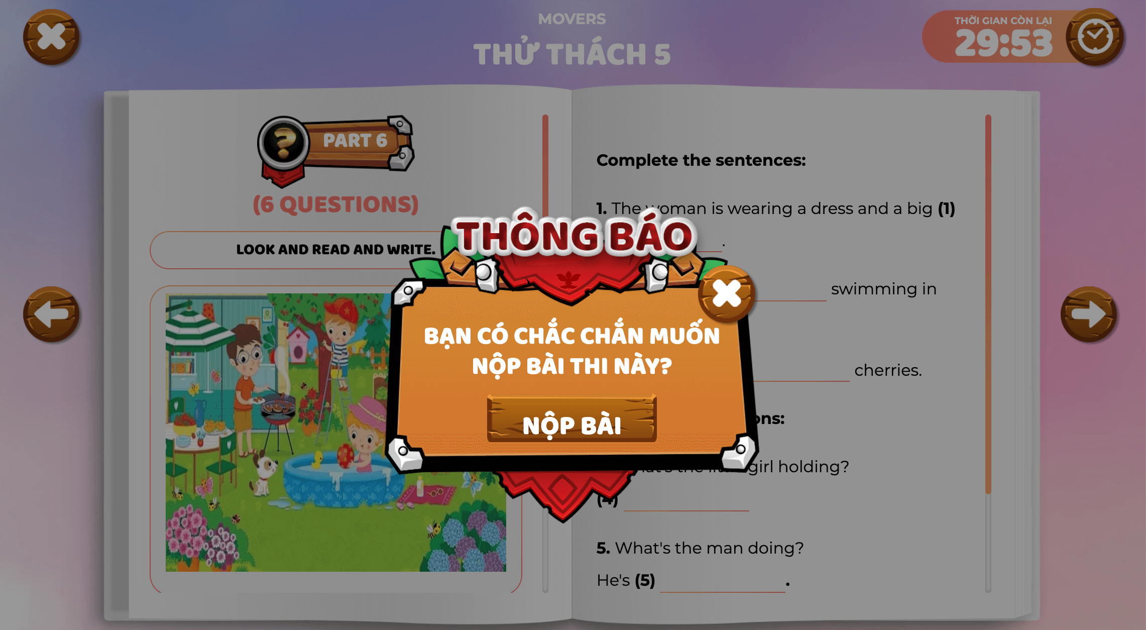 Khi hoàn thành phần cuối cùng của bài thi, người học click vào nút “Nộp bài” để hệ thống xác nhận bài làm và tiến hành chấm điểm.