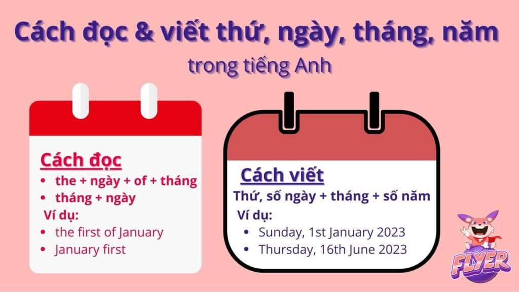Không như tiếng Việt, cách đọc thứ, ngày, tháng, năm trong tiếng Anh có một số điểm khác biệt so với cách viết. Hãy cùng FLYER tìm hiểu từng cách một ngay trong phần này bạn nhé!