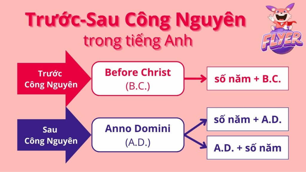 Bốn phần vừa rồi là cách đọc và viết thời gian theo lịch dương. Tuy nhiên, trên thực tế lại có rất nhiều cách tính thời gian khác nhau, thường thấy nhất là lịch âm và khoảng thời gian trước-sau Công Nguyên. Trong phần này, hãy cùng FLYER mở rộng kiến thức với cách nói những khoảng thời gian trên bằng tiếng Anh bạn nhé!