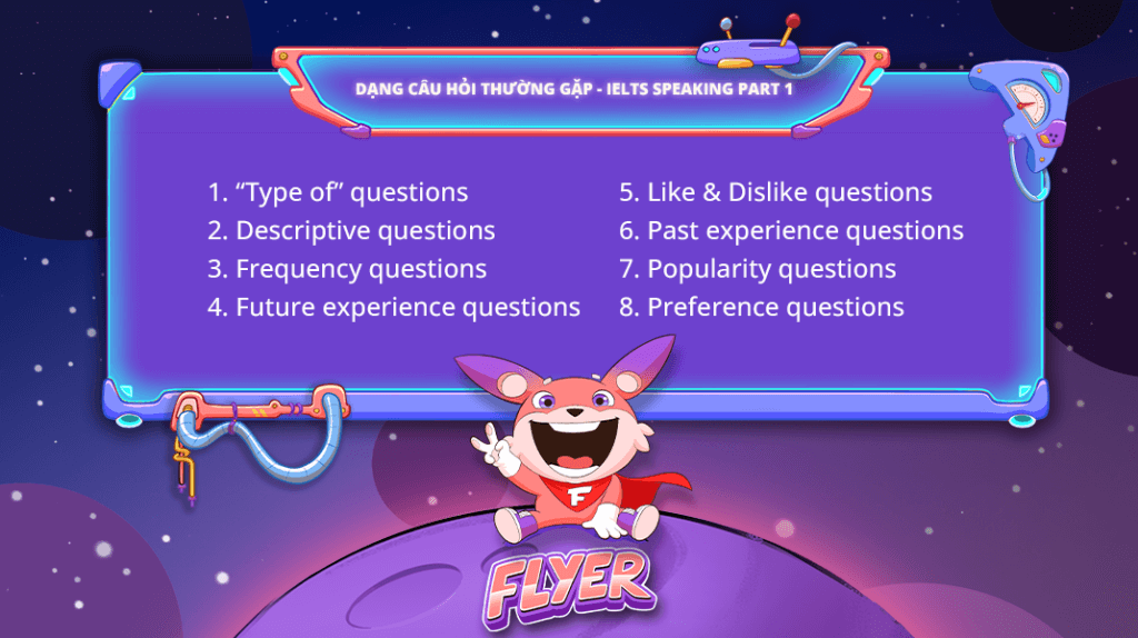 Trong phần thi IELTS Speaking Part 1, bạn sẽ thường gặp 8 dạng câu hỏi sau: