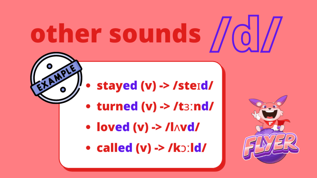 Quy tắc phát âm -ed là /d/ áp dụng cho tất cả các trường hợp còn lại, khi âm tiết cuối của từ là âm tiết khác ngoài những âm trên.