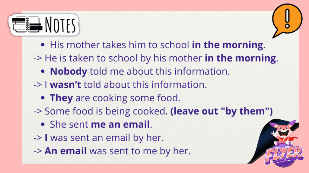 Khi chuyển câu chủ động sang câu bị động, bạn cần lưu ý một số điều sau đây: