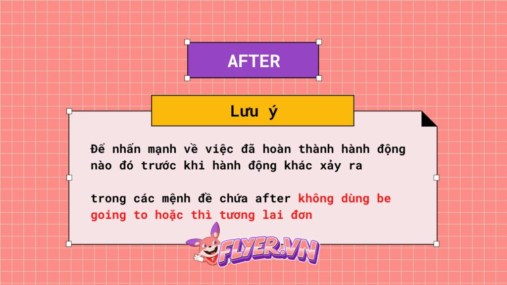 Ai cũng biết “after” có nghĩa là “sau”, nhưng bạn có biết after là một liên từ có nhiều cách sử dụng khác nhau ở trong câu? Cấu trúc after thường xuất hiện trong các cuộc hội thoại cũng như các bài thi tiếng Anh. Hôm nay hãy cùng FLYER tìm hiểu về cấu trúc và cách dùng chi tiết của “after” với những ví dụ cụ thể qua bài viết này nhé!