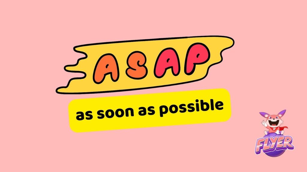 Cụm từ “as soon as possible” mang nghĩa là “càng sớm càng tốt” hoặc “nhanh nhất có thể”, có cách viết tắt thường thấy là “ASAP”. Cụm từ này cùng cách viết tắt “ASAP” được dùng rất phổ biến trong đời sống hàng ngày. Tuy nhiên, bạn nên lưu ý hạn chế sử dụng nó trong các văn cảnh cần sự trang trọng.