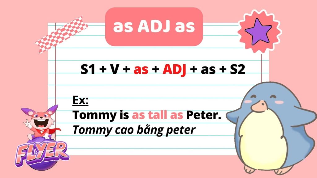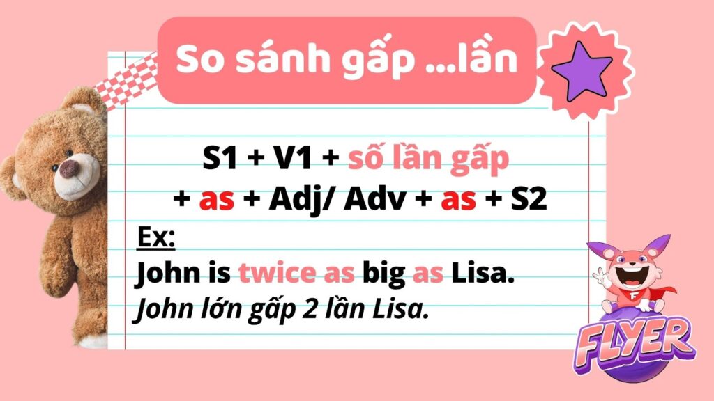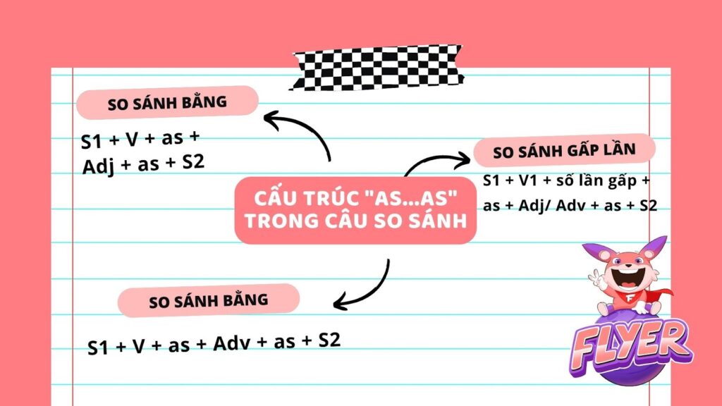 “As … as” là cấu trúc được sử dụng phổ biến trong câu so sánh bằng với tính từ, trạng từ hoặc trong câu so sánh “gấp … lần”. Hãy cùng FLYER tìm hiểu cấu trúc này trong phần sau đây.