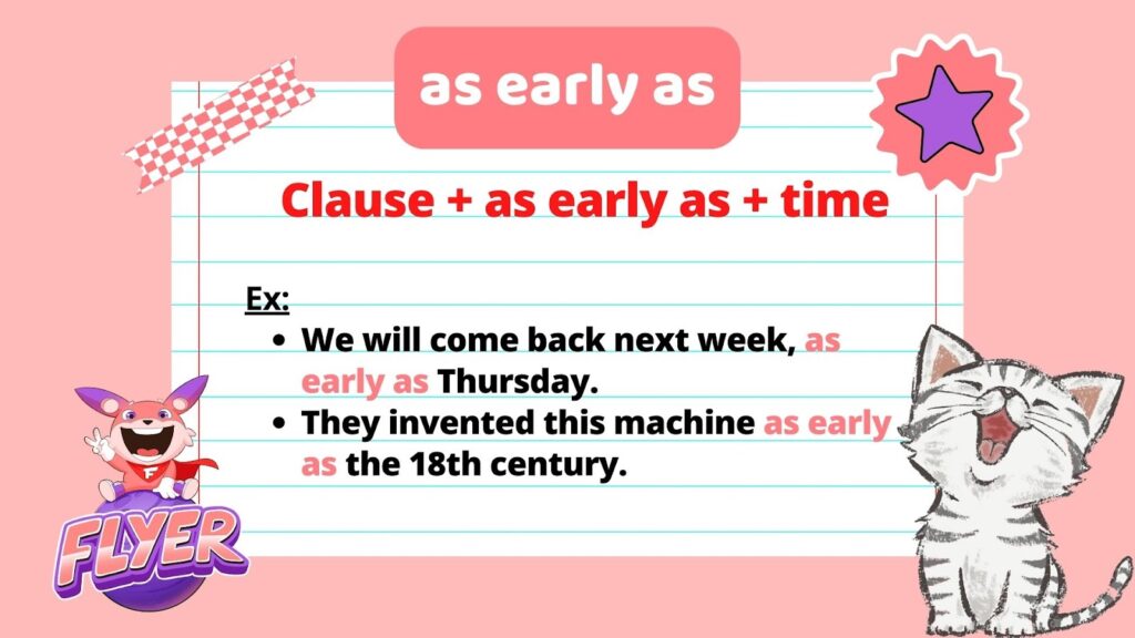 “As early as” có nghĩa là “sớm nhất vào”, “ngay từ”. Cấu trúc “as … as” này là một cấu đơn giản và thường được dùng khi muốn nhấn mạnh thời điểm diễn ra sự việc hay hành động nào đó.