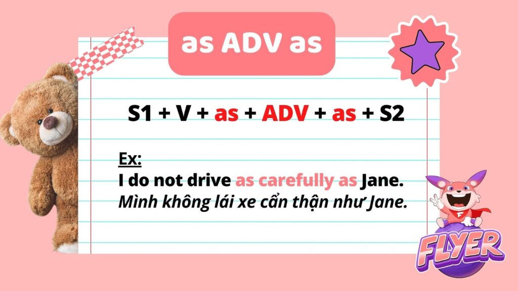 2.2 Cấu trúc “as ADV as” trong so sánh bằng