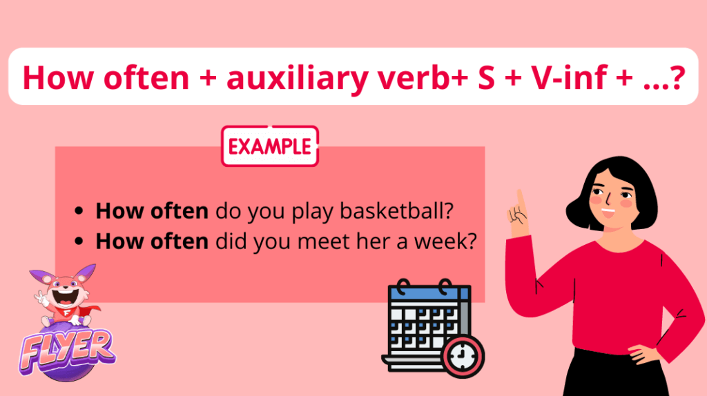 Giống như phần lớn các loại câu nghi vấn trong tiếng Anh, cấu trúc “How often” có công thức cụ thể như sau: