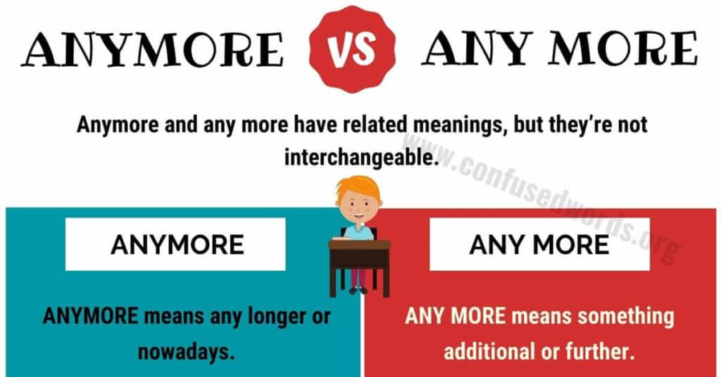 Lưu ý: Chúng ta rất dễ lầm lẫn giữa “any more” và “anymore” (viết dính liền nhau):