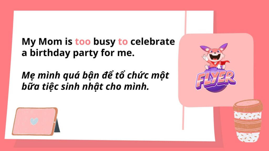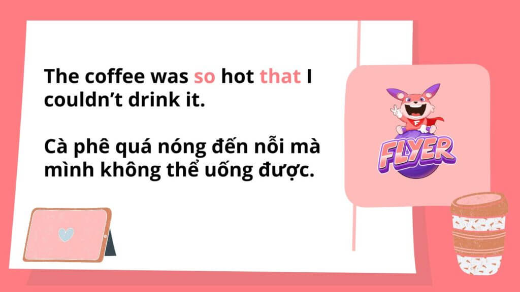 2 câu này có chủ ngữ khác nhau (“coffee” và “she”). Vì vậy chúng ta nối hai mệnh đề này bằng cách thêm “for” vào cấu trúc “too … to”.